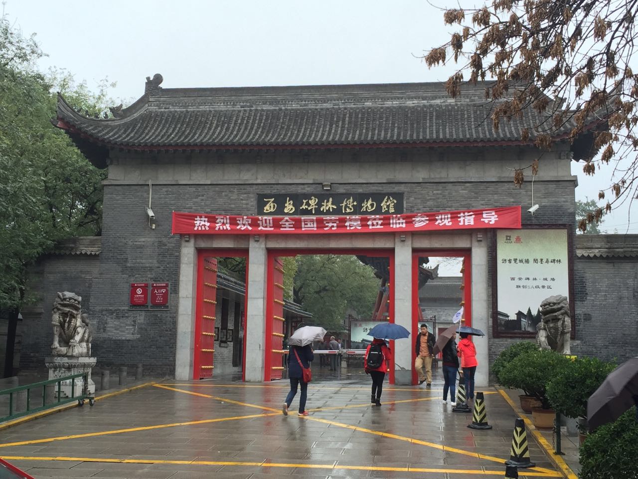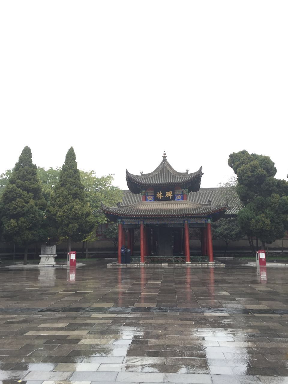 出钟楼后,我们到达碑林博物馆。馆内陈列有历代碑刻、墓志及石刻,十分壮观。据称这里有从汉到清的各代碑石、墓志共一千多块,碑石如林。初入门,便可见唐明皇手书《孝经》石刻,书法工整、风格典雅,用笔丰腴华丽、大气磅礴,令人赞叹。