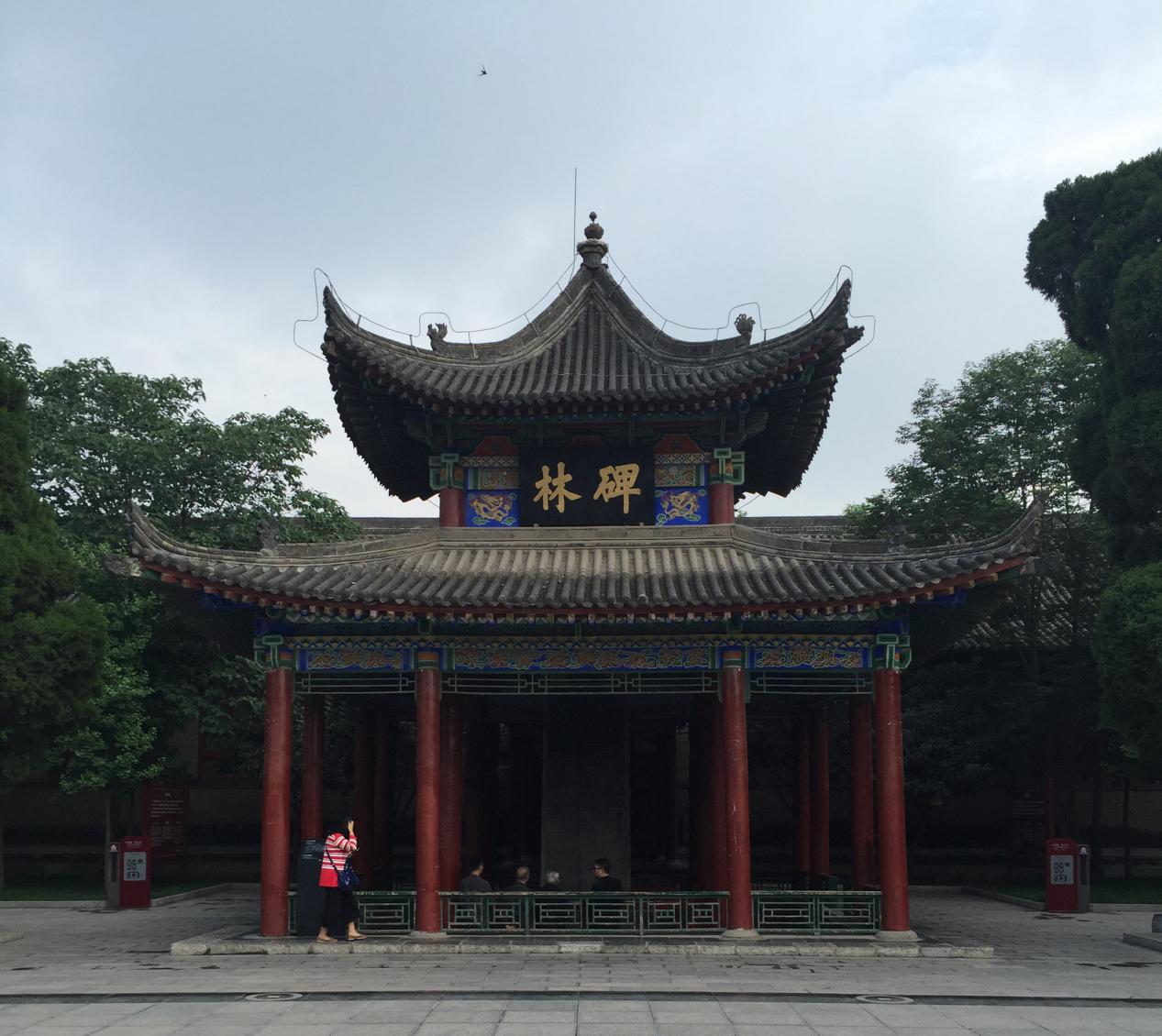 5月28日,雨过天晴,用韩老师的话说,这是西安少有的大晴天。我们一早出发,途经书院门和关中书院,最终到达碑林博物馆。西安碑林博物馆是陕西创建最早的博物馆,它以收藏、陈列和研究历代碑刻、墓志及石刻为主,成为在中国独树一帜的艺术博物馆。现有馆藏文物11000余件,其中国宝级文物19个号134件,一级文物535件。著名的“昭陵六骏”就有四骏藏于本馆。陈列由碑林、石刻艺术和其它文物展览三部分组成,共12个展室。现有7座碑室、8座碑廊、8座碑亭,加上石刻艺术室和4座文物陈列,陈列面积达到4900平米。而西安碑林的创建可以追溯到公元1087年,是在保存唐代石经的基础上发展起来的,陈列有从汉到清的各代碑石、墓志共一千多块。通过参观和了解碑林的重修和复建历史,我们对历史上西安文化发展的变迁有了初步的认识。