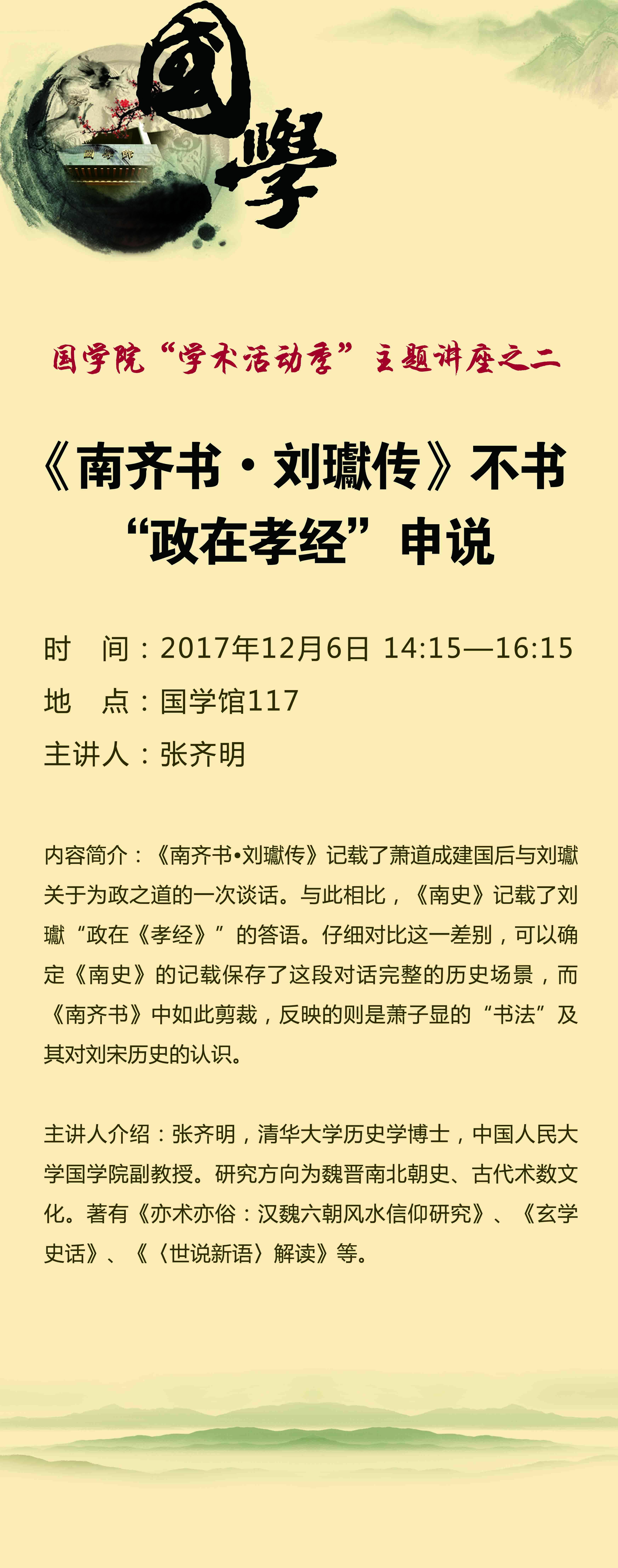 主讲人介绍:张齐明,清华大学历史学博士,澳洲幸运5预测 副教授。研究方向为魏晋南北朝史、古代术数文化。著有《亦术亦俗:汉魏六朝风水信仰研究》、《玄学史话》、《〈世说新语〉解读》等。