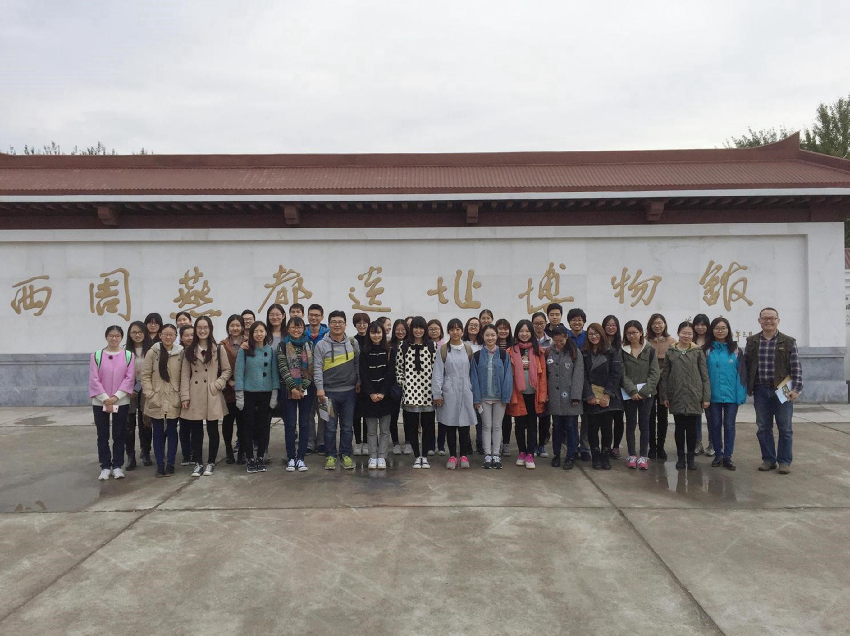 结束了宛平城和卢沟桥的游览之后,一行人随车向房山区琉璃河镇董家林村进发。琉璃河的考古发现,把北京作为都城的历史,提前到3000多年前的西周时期。北京西周燕都遗址,也称为琉璃河遗址,是迄今西周考古中发现的唯一一处城址、宫殿区和诸侯墓地同时并存的遗址,具有极为重要的学术价值。1995年在遗址上建立了博物馆并对外开放,是为西周燕都遗址博物馆。博物馆的基本陈列为《灿烂的古燕都文化》, 馆内共七个展示厅:有序厅、青铜礼器厅、墓葬车马坑厅、青铜酒器兵器厅、陶器玉器漆器厅等。在参观的过程中,同学们了解到迄今为止北京地区最早建立的燕都城址的概况,并了解北京这座古老城市的变迁。通过与两位老师的交流讨论,此时方知书本知识在实践运用时稍显不足,也因此在实物实景前更加用心。燕国的历史,还有很多问题不清楚,考古工作还在继续,这也将成为同学诸位日后学习致力的方向之一。探索之路不止,同志仍需努力。
