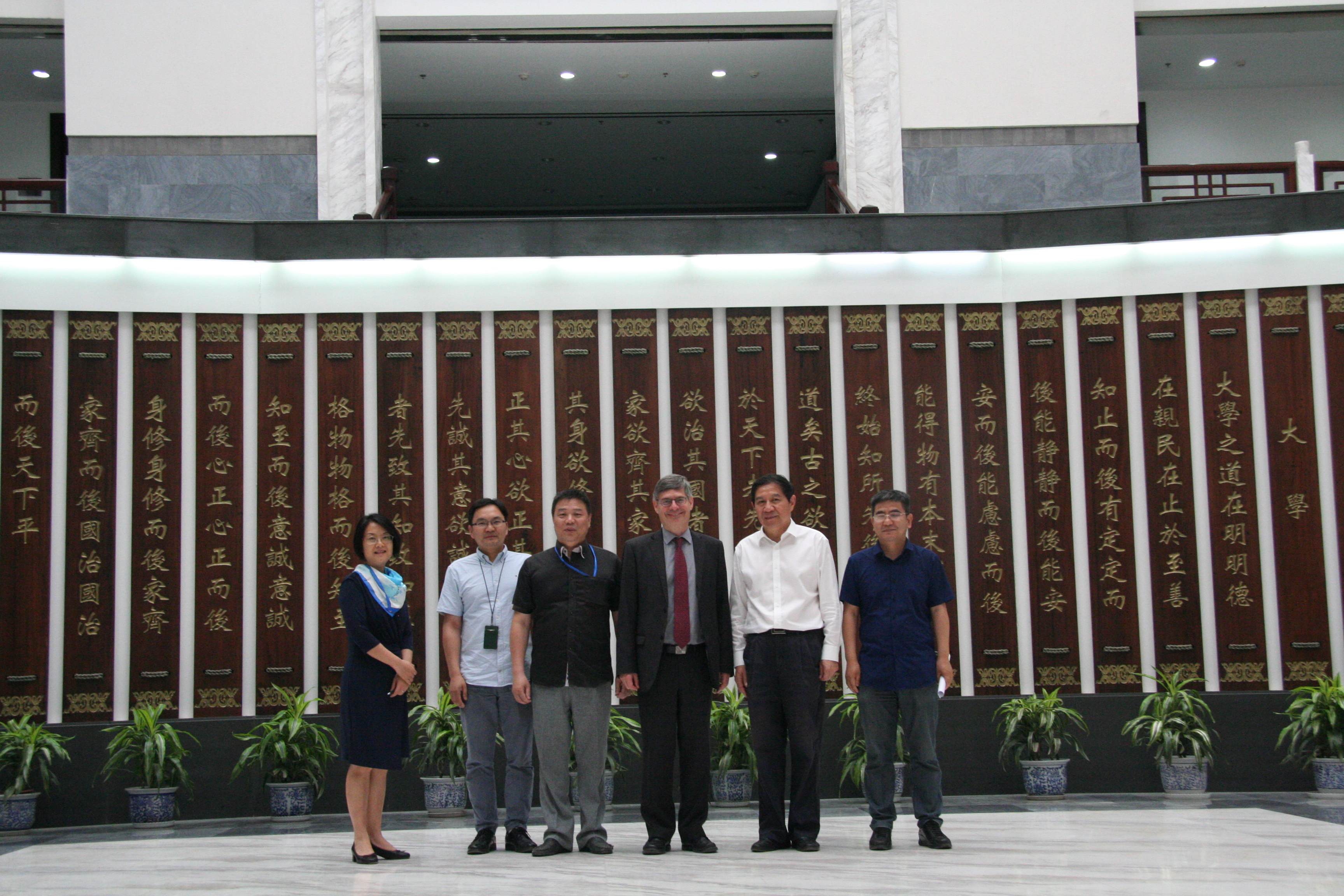 双方分别介绍了各自的学科设置特点及国际交流状况,就进一步在学生交换、教师互派、科研合作方面展开合作交换了意见,并达成初步意向。双方都表示在接下来的合作中,要重点突出教师之间的合作交流,整合相关研究领域的学术力量。最后,会面在轻松愉快地氛围中结束,双方在国学馆大厅进行了合影留念。