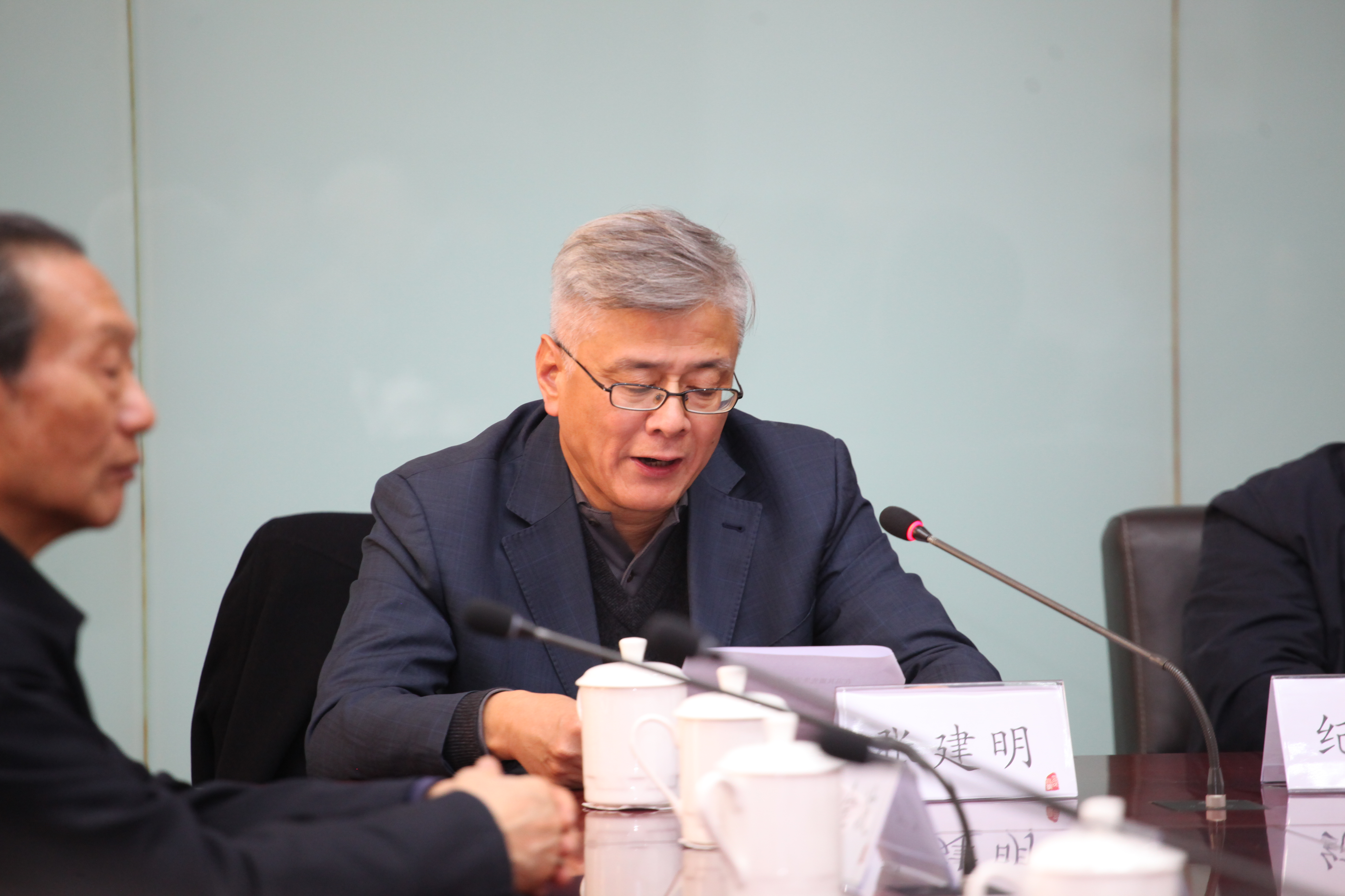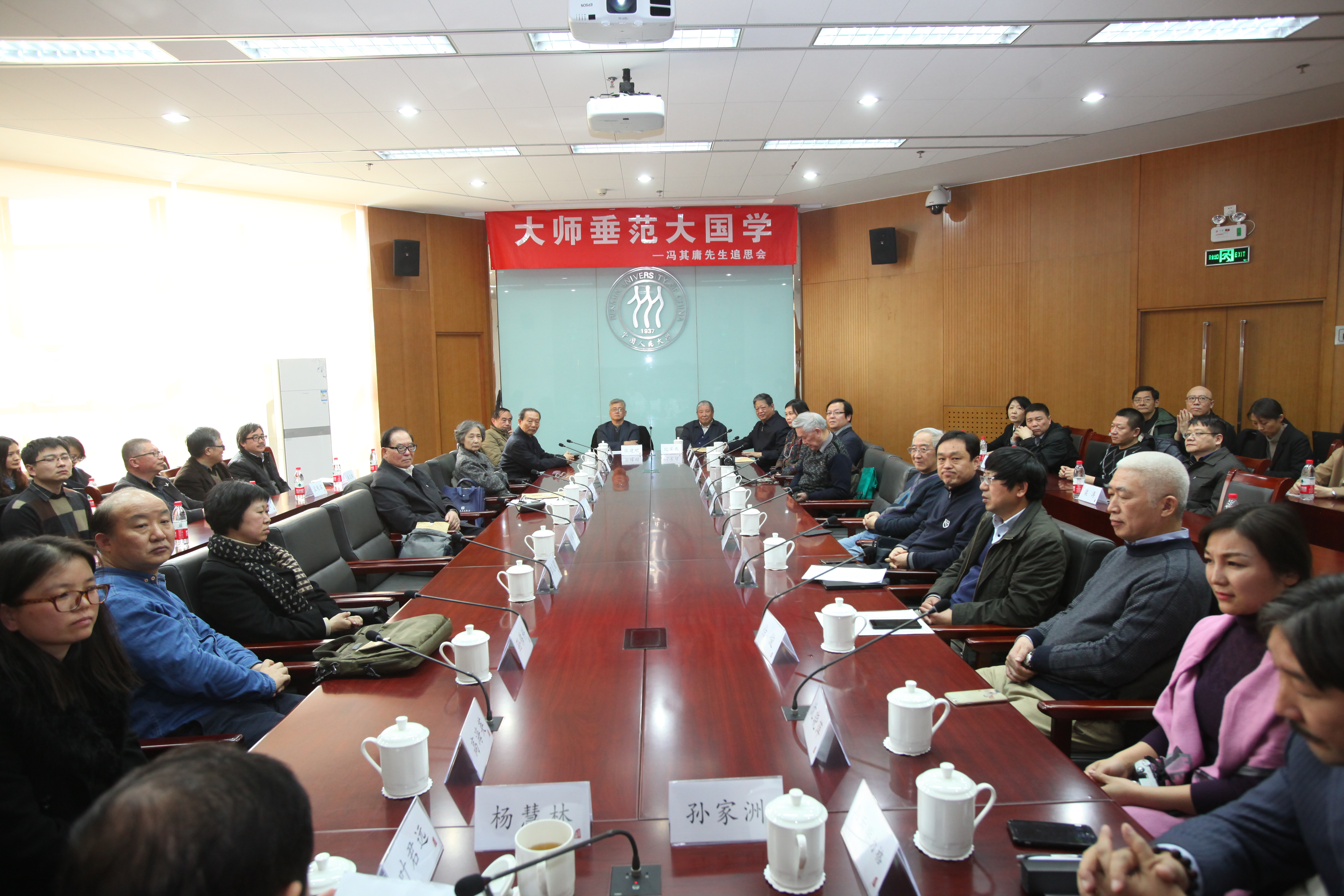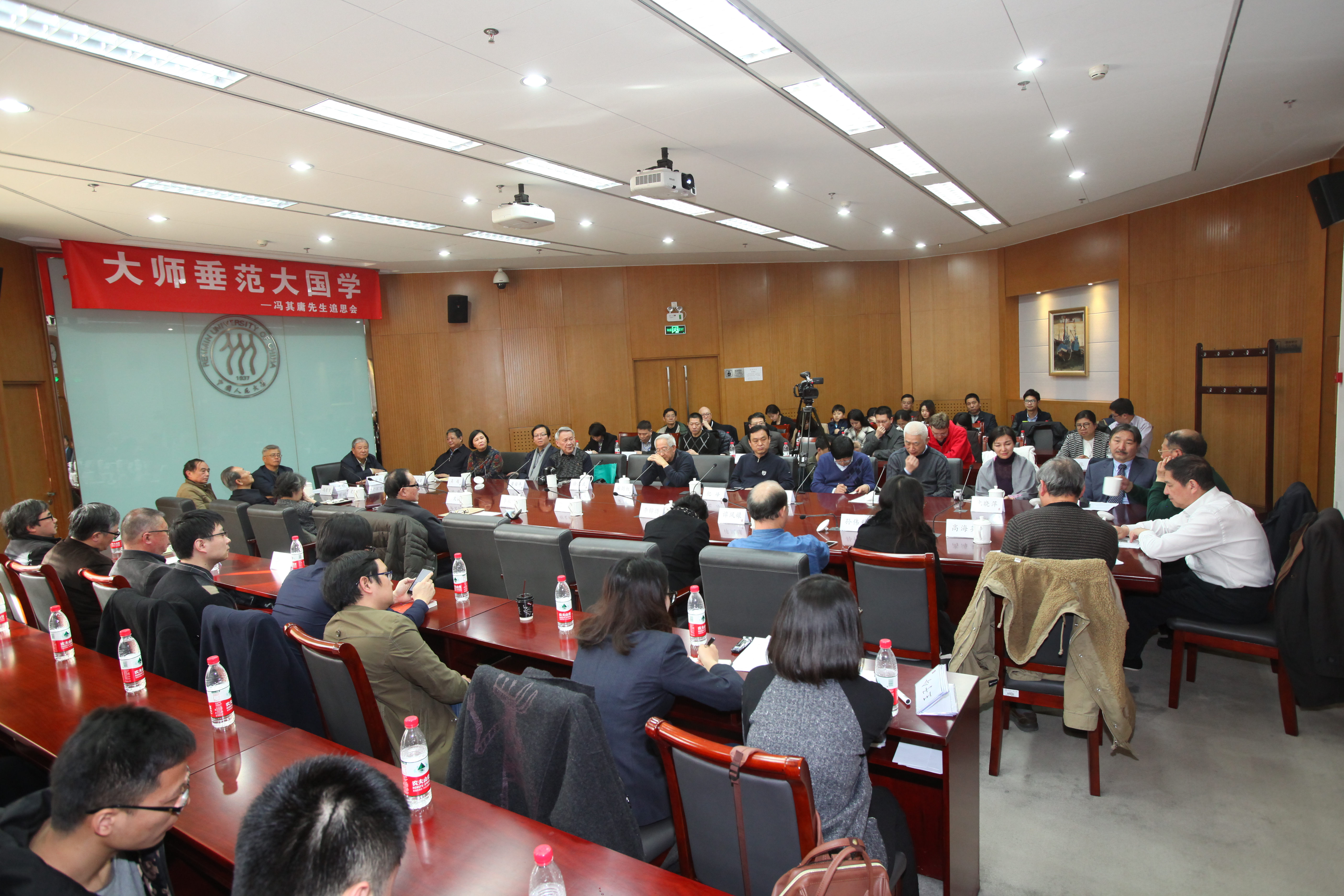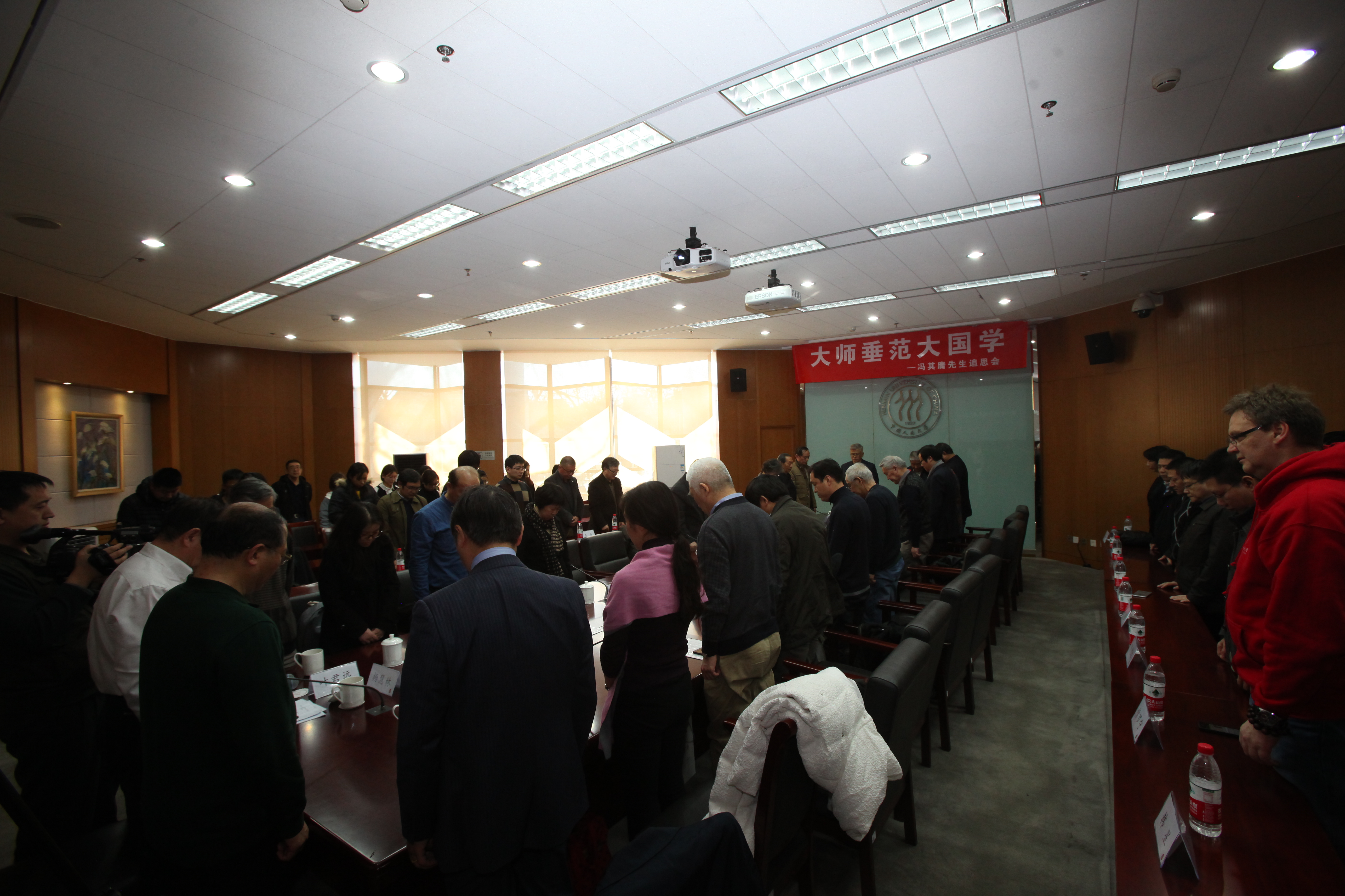 在逸夫楼第一会议室庄严凝重的氛围中,全体与会人员为冯其庸先生默哀一分钟。大家共同观看了冯其庸先生生平纪录短片,回忆他生前学习、工作、生活的点点滴滴,共同表达对先生深切的感激和怀念之情。