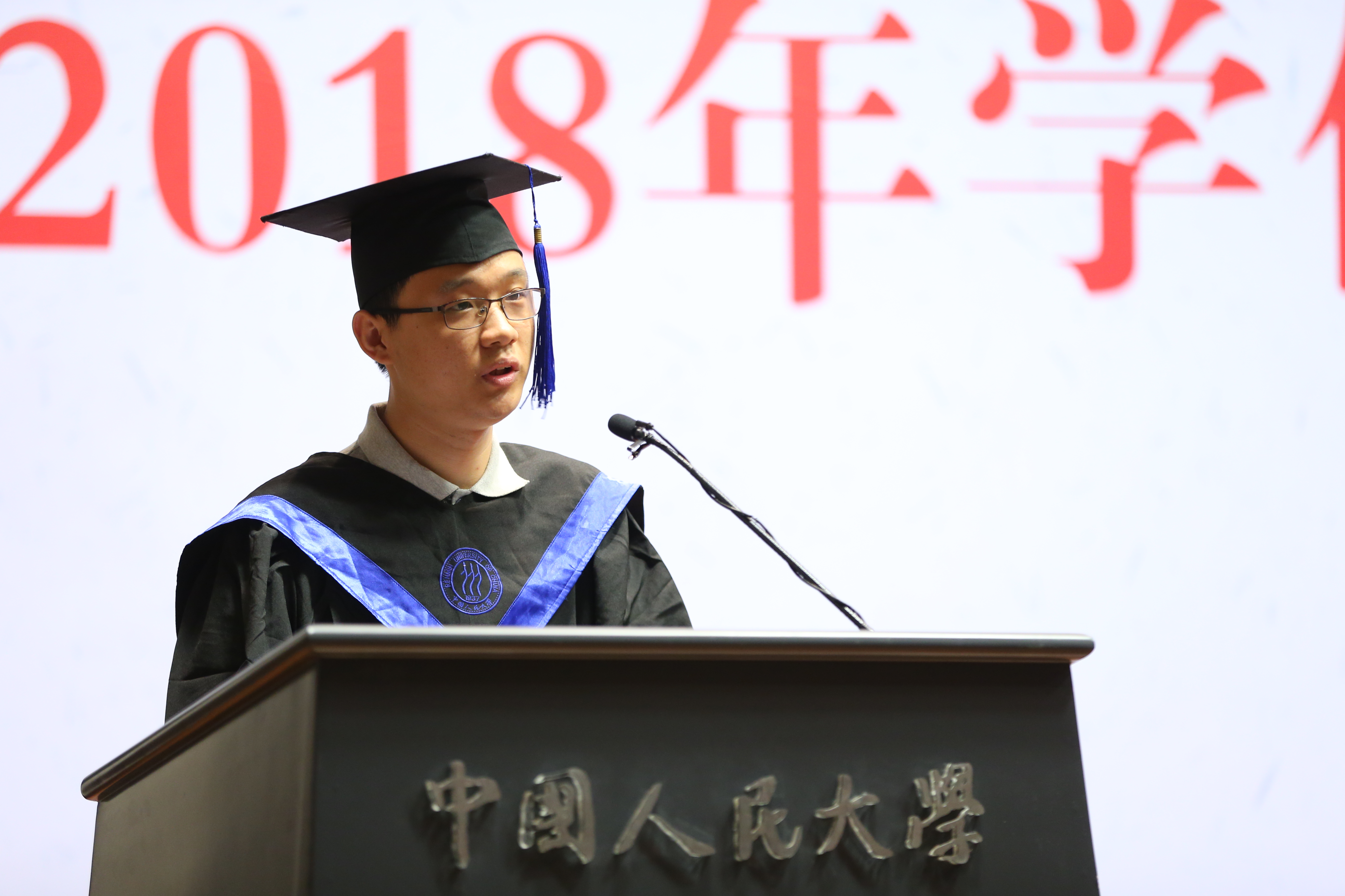 随后,毕业生代表2016级硕士生曲祯朋同学发言。他将毕业离校之际的感受总结为两个关键词——感谢、珍惜。他感谢澳洲幸运5预测 给予他的机遇,感谢老师们的谆谆教诲和同学们的帮助,并希望毕业生能够珍惜曾经的记忆,珍惜曾经拥有的理想。