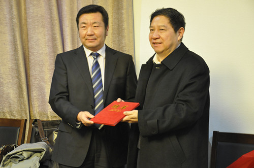 仁钦道尔吉研究员、新疆和布克赛尔蒙古族自治县才布格加甫县长先后致辞,简要介绍了卫拉特蒙古历史与文化、卫拉特学与托忒学研究现状以及成立研究中心的现实意义。杨慧林院长给叶尔达教授颁发了聘请书。新疆大学、新疆师范大学、新疆社会科学等单位向西域历史语言研究所赠送了锦旗及卫拉特学相关研究著述。